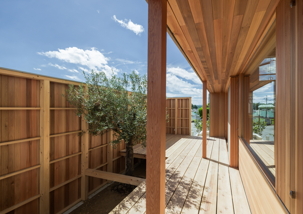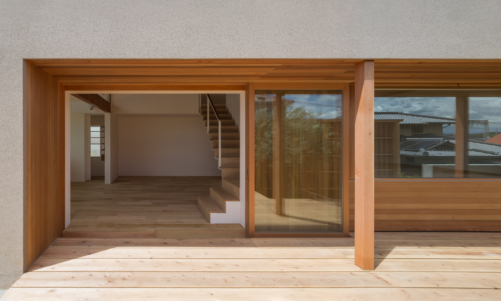 partial view of the facade from the wood deck