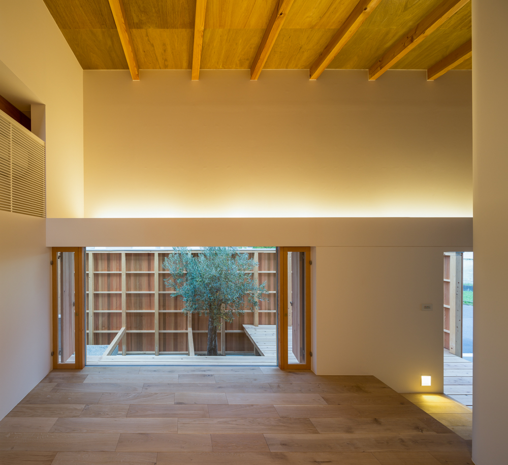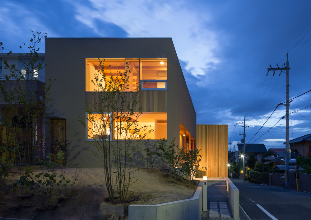 抑揚の家night view of the south facade