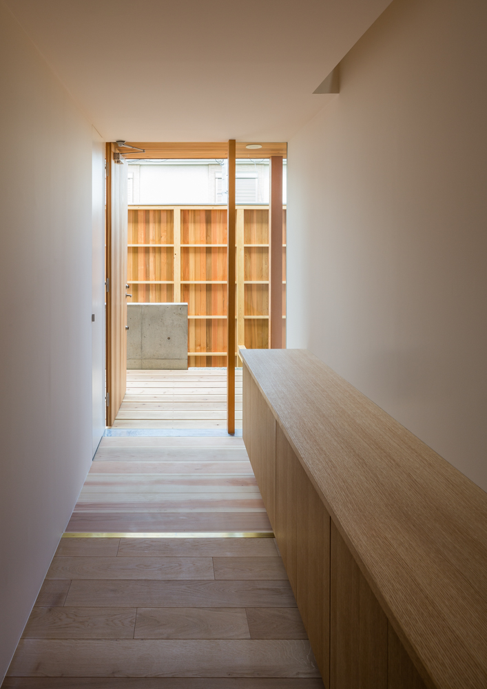 detail of the approach enclosed in cedar wood