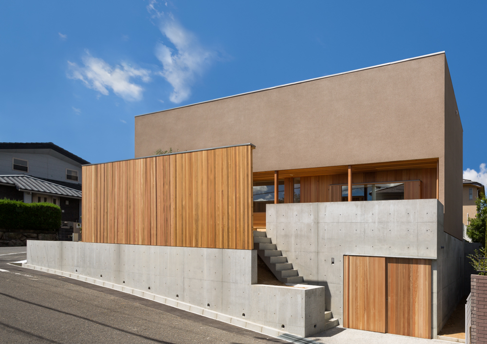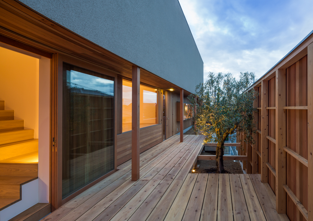 抑揚の家night view of the south facade